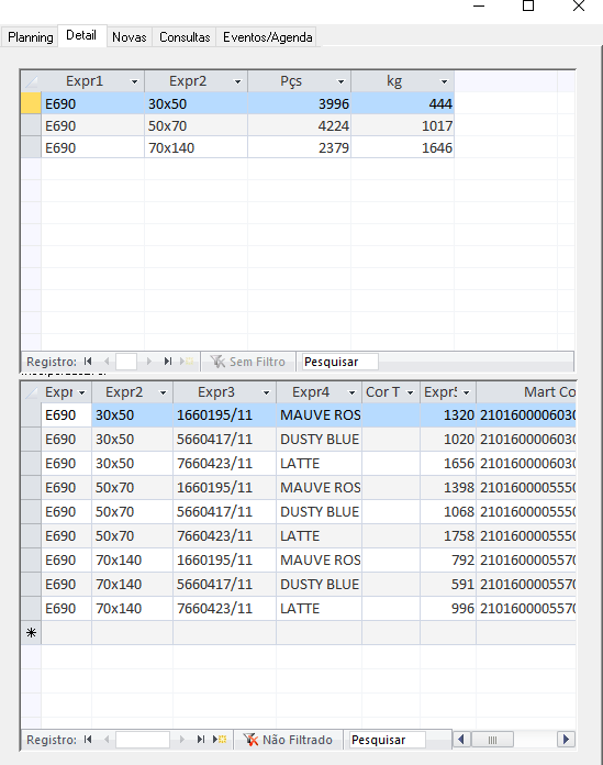 The Planning application it has been developed over the years and grows according to the needs. As this was not the official application in the company it was developed code for reading data in the main database. The Acess application was developed because the main software not have a specific planning system.